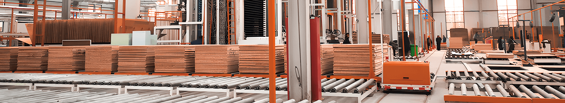 Fábrica inteligente de Shandong com uma capacidade de produção anual de 100.000 metros cúbicos de placas de várias camadas. Especificações do produto: 4x8 pés, 4x9 pés, 4x10 pés, espessura: 9-18mm.